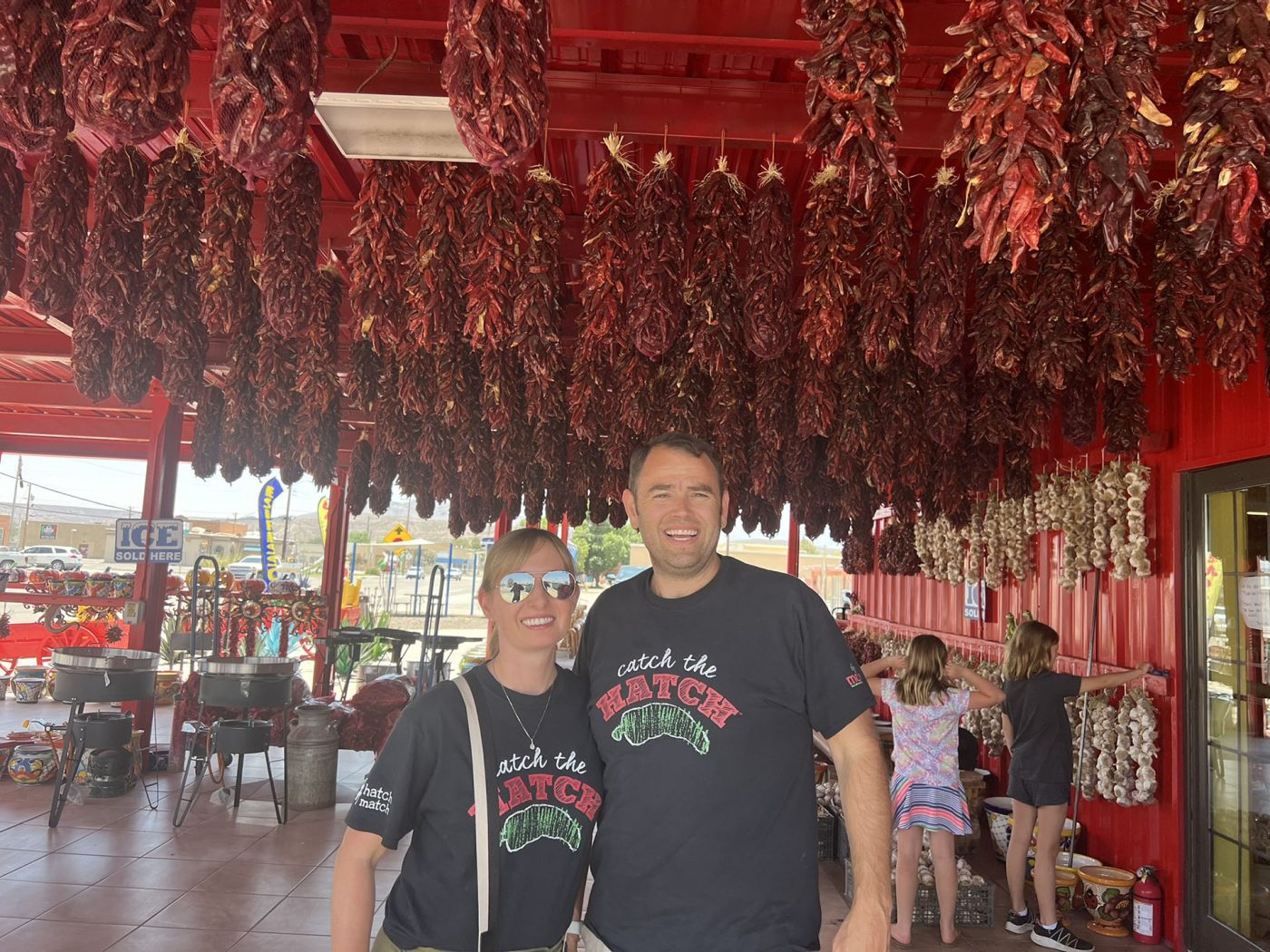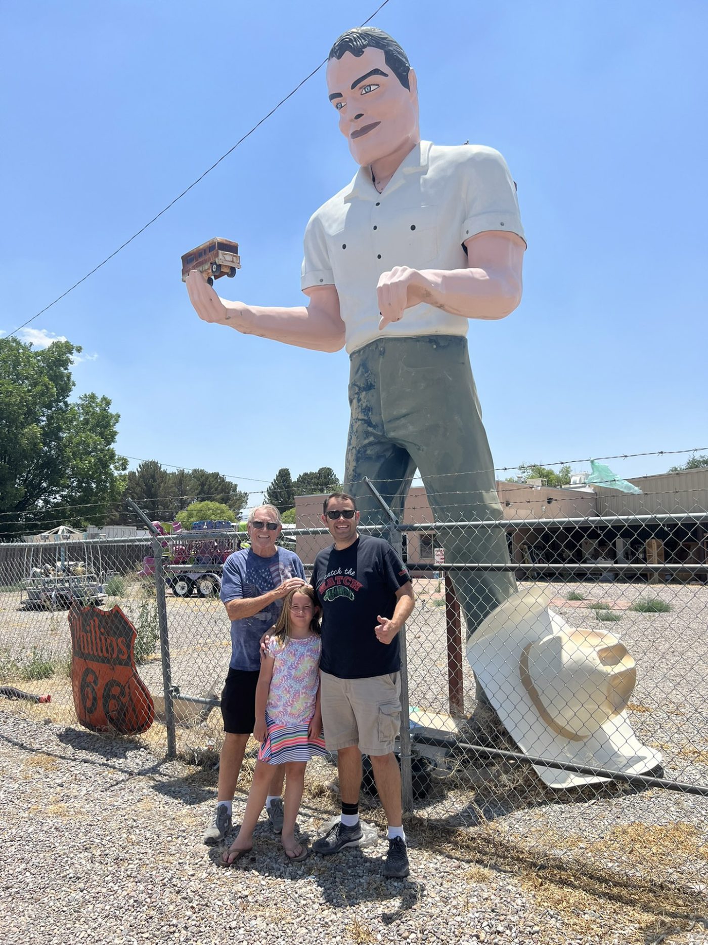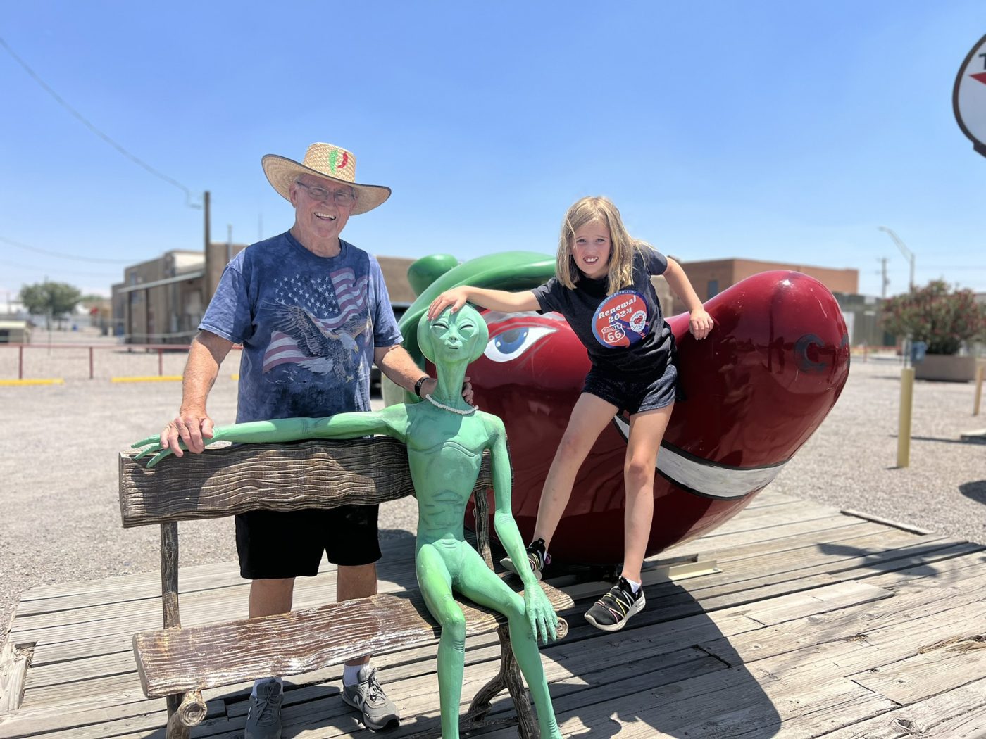 In Albuquerque, Allison’s husband Robert flew from Cincinnati to continue the journey, and her friends travelled home. Robert, Allison, Olivia, and Amelia commenced a detour south through New Mexico to El Paso, Texas, Robert’s childhood home. They met Robert’s father in El Paso and proceeded to go on a nostalgic visit to special places, Robert’s family burial plot, several beloved Mexican restaurants, and a stop in Hatch, NM, home of the best chiles on the planet.